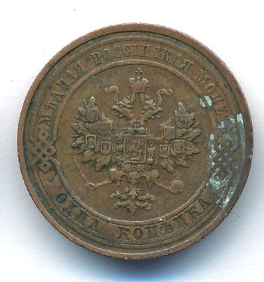 Лицевая сторона — двуглавый орел, надпись МЕДНАЯ РОССIЙСКАЯ МОНЕТА и обозначение номинала (одна копейка); оборотная — обозначение номинала (1 копейка) в бусовом ободке и дата. Нормативный вес — 3,28 грамма, гурт рубчатый.