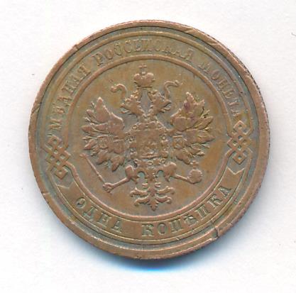 Лицевая сторона — двуглавый орел, надпись МЕДНАЯ РОССIЙСКАЯ МОНЕТА и обозначение номинала (одна копейка); оборотная — обозначение номинала (1 копейка) в бусовом ободке и дата. Нормативный вес — 3,28 грамма, гурт рубчатый.