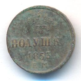Лицевая сторона — вензель Николая I, оборотная — обозначение номинала (полушка) и дата. Нормативный вес — 1,28 грамма, гурт гладкий.