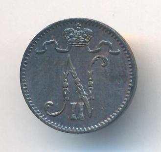 Лицевая сторона — вензель Александра II, оборотная — номинал (1 PENNIA) и дата. Нормативный вес — 1,28 грамма, гурт гладкий.