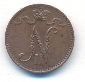 Лицевая сторона — вензель Александра II, оборотная — номинал (1 PENNIA) и дата. Нормативный вес — 1,28 грамма, гурт гладкий.