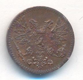 Лицевая сторона — вензель Александра II, оборотная — номинал (1 PENNIA) и дата. Нормативный вес — 1,28 грамма, гурт гладкий.
