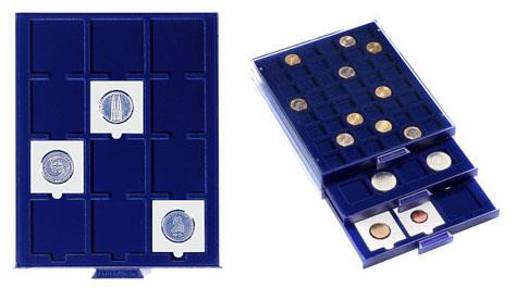 Особенности: Особенности: скол на кассете, кассета продается без монет. Размер кассеты: 250х195х19 мм, материал: пластмасса, внутри синий бархат. Размер ячейки: 50х50 мм.