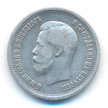 Лицевая сторона — портрет Николая II в круговой надписи «Б.М. НИКОЛАЙ II ИМПЕРАТОРЪ И САМОДЕРЖЕЦЪ ВСЕРОСС», оборотная — двуглавый орел, обозначение номинала (25 копеекъ) и дата.