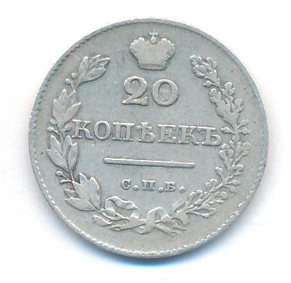 Лицевая сторона - «масонский орел» и дата, оборотная - окруженное венком из лавровой и дубовой обозначение номинала (20 копеекъ). Проба — 868, нормативный вес — 4,15 грамма.