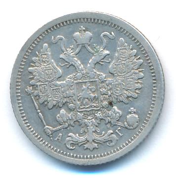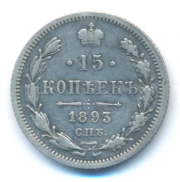 Лицевая сторона — гербовый орел, оборотная —обозначение номинала (15 копеекъ), окруженное венком из лавровой и дубовой ветвей и дата.