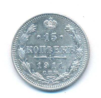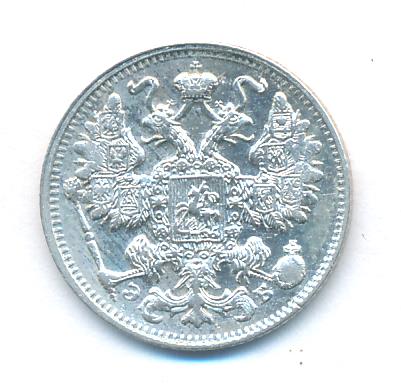 Лицевая сторона — гербовый орел, оборотная —обозначение номинала (15 копеекъ), окруженное венком из лавровой и дубовой ветвей и дата.