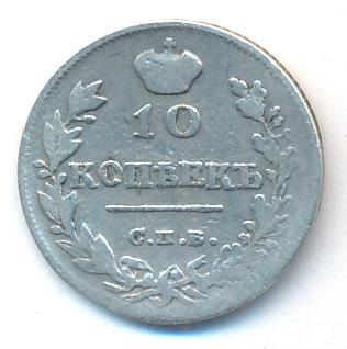 Лицевая сторона - двуглавый орел и дата, оборотная — обозначение номинала (10 копеекъ) в венке из лавровой и дубовой ветвей. Проба до 1813 года — 750, нормативный вес — 2,40 грамма; после 1813 года — проба 868, нормативный вес — 2,07 грамма.