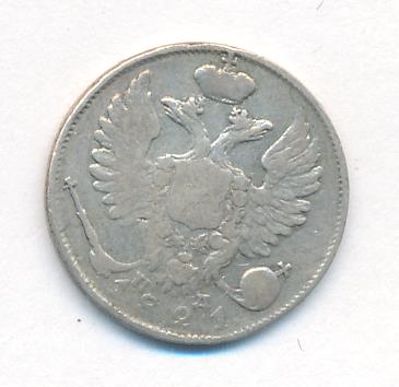 Лицевая сторона - двуглавый орел и дата, оборотная — обозначение номинала (10 копеекъ) в венке из лавровой и дубовой ветвей. Проба до 1813 года — 750, нормативный вес — 2,40 грамма; после 1813 года — проба 868, нормативный вес — 2,07 грамма.