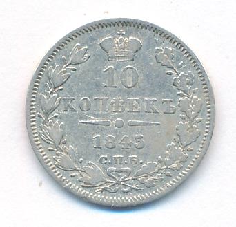Лицевая сторона — новый гербовый орел с поднятыми крыльями, оборотная —обозначение номинала (10 копеекъ), окруженное венком из лавровой и дубовой ветвей и дата. Проба — 868, нормативный вес — 2,07 грамма.