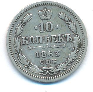 Лицевая сторона — гербовый орел, оборотная —обозначение номинала (10 копеекъ), окруженное венком из лавровой и дубовой ветвей и дата.