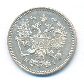 Лицевая сторона — гербовый орел, оборотная —обозначение номинала (10 копеекъ), окруженное венком из лавровой и дубовой ветвей и дата.