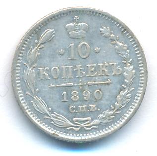 Лицевая сторона — гербовый орел, оборотная —обозначение номинала (10 копеекъ), окруженное венком из лавровой и дубовой ветвей и дата.