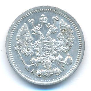 Лицевая сторона — гербовый орел, оборотная —обозначение номинала (10 копеекъ), окруженное венком из лавровой и дубовой ветвей и дата.