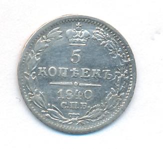 Лицевая сторона — новый гербовый орел с поднятыми крыльями, оборотная —обозначение номинала (5 копеекъ), окруженное венком из лавровой и дубовой ветвей и дата. Проба — 868, нормативный вес — 1,04 грамма.