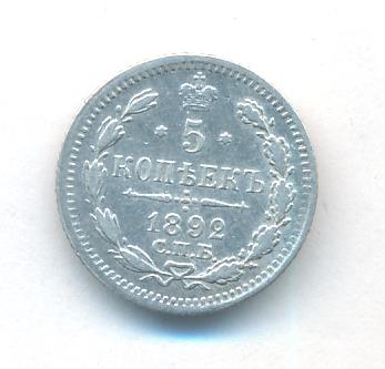 Лицевая сторона — гербовый орел, оборотная —обозначение номинала (5 копеекъ), окруженное венком из лавровой и дубовой ветвей и дата.