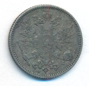 Лицевая сторона — российский двуглавый орел с гербом Великого княжества Финляндского на груди, оборотная — номинал и дата в венке из дубовых листьев. Проба — 750, нормативный вес — 2,55 грамма, гурт рубчатый.