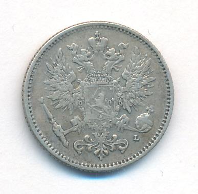 Лицевая сторона — российский двуглавый орел с гербом Великого княжества Финляндского на груди, оборотная — номинал и дата в венке из дубовых листьев. Проба — 750, нормативный вес — 2,55 грамма, гурт рубчатый.
