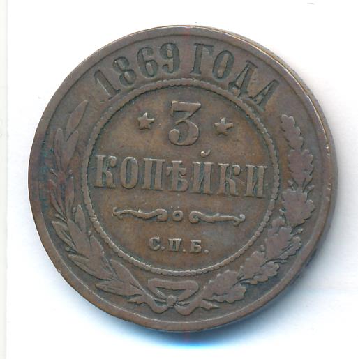 Лицевая сторона — двуглавый орел, надпись МЕДНАЯ РОССIЙСКАЯ МОНЕТА и обозначение номинала (три копейки); оборотная — обозначение номинала (3 копейки) в бусовом ободке и дата. Нормативный вес — 9,83 грамма, гурт рубчатый.