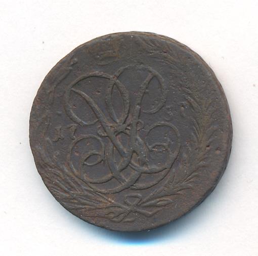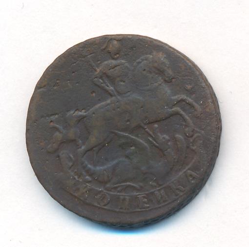 Производство ведется на московском Красном, Екатеринбургском и Сестрорецком дворах. Лицевая сторона — Георгий Победоносец и обозначение номинала (копейка) в картуше, оборотная — сложный симметричный вензель Елизаветы Петровны и дата. Нормативный вес — 10,24 грамма, гурт — сетка.