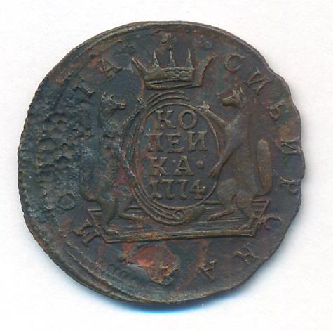 Лицевая сторона - два соболя поддерживают щит с обозначением номинала (копейка) под короной, надпись «СИБИРСКАЯ МОНЕТА». Оборотная — вензель Екатерины II в венке из пальмовой и лавровой ветвей. Гурт — шнур, вес — 6,55 грамма.