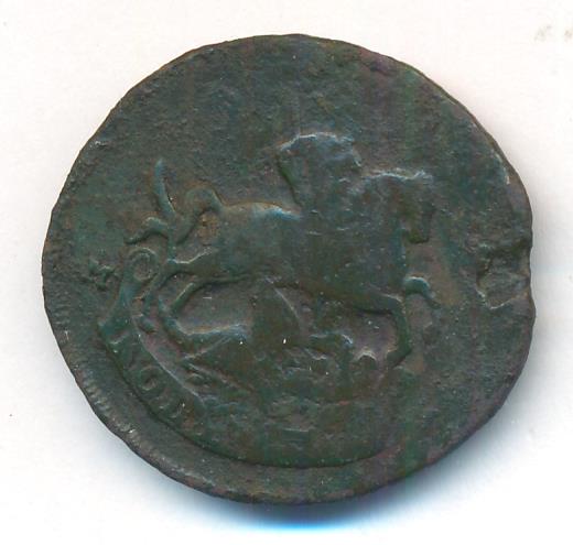 Лицевая сторона — Георгий Победоносец и обозначение номинала (копейка) в картуше, оборотная — вензель Екатерины II и дата. Нормативный вес — 10,24 грамма, гурт — сетка, или узор, или шнур.