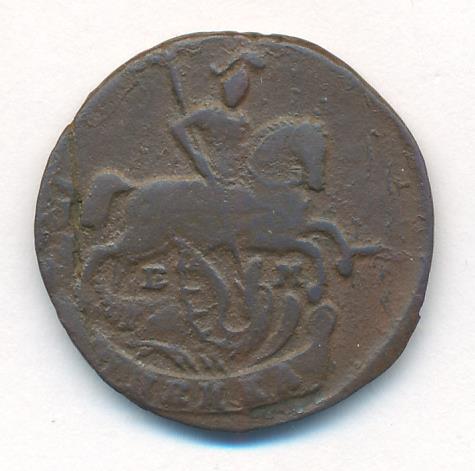 Лицевая сторона — Георгий Победоносец и обозначение номинала (копейка) в картуше, оборотная — вензель Екатерины II и дата. Нормативный вес — 10,24 грамма, гурт — сетка, или узор, или шнур.