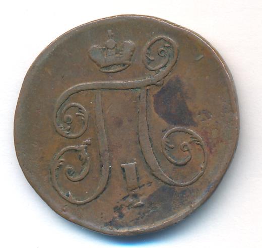 Лицевая сторона — вензель Павла I под короной, оборотная — номинал (1 копейка) и дата. Нормативный вес — 10,24 грамма, гурт — шнур.