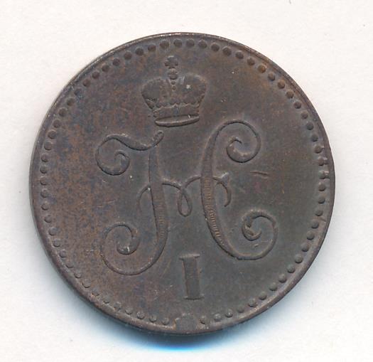 Лицевая сторона — вензель Николая I в бусовом ободке, оборотная — надпись «1 КОПЕЙКА СЕРЕБРОМ» и дата. Нормативный вес — 10,24 грамма, гурт гладкий.
