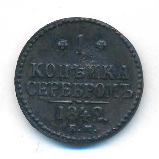 Лицевая сторона — вензель Николая I в бусовом ободке, оборотная — надпись «1 КОПЕЙКА СЕРЕБРОМ» и дата. Нормативный вес — 10,24 грамма, гурт гладкий.