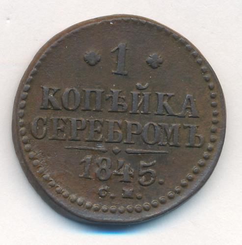 На новых монетах равенство серебряному курсу указано прямо в номинале: «1 КОПЕЙКА СЕРЕБРОМ». Указ об их выпуске следует 6 сентября 1840 года («О новой медной монете на серебро 16-рублевого в пуде достоинства»). Массовая чеканка началось за год до этого на Екатеринбургском (знак ЕМ) и Сузунском (знак СМ) дворах. В качестве временной меры в 1840-1843 годах к ним подключается Ижорский завод (знак СПМ). С 1844 года после «значительного скопления медной монеты в народном обращении» в Екатеринбурге производство прекращается, а в Сузуне сокращается.