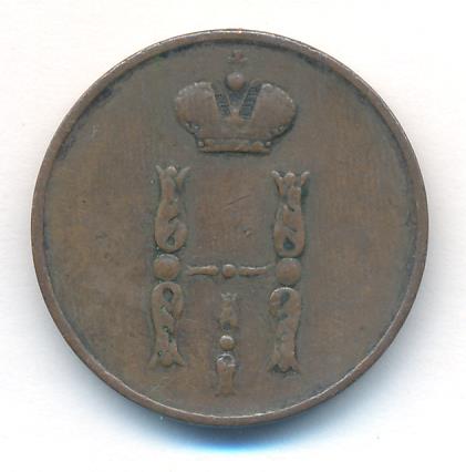 Лицевая сторона — вензель Николая I, оборотная — обозначение номинала (копейка) и дата. Нормативный вес — 5,12 грамма, гурт гладкий.