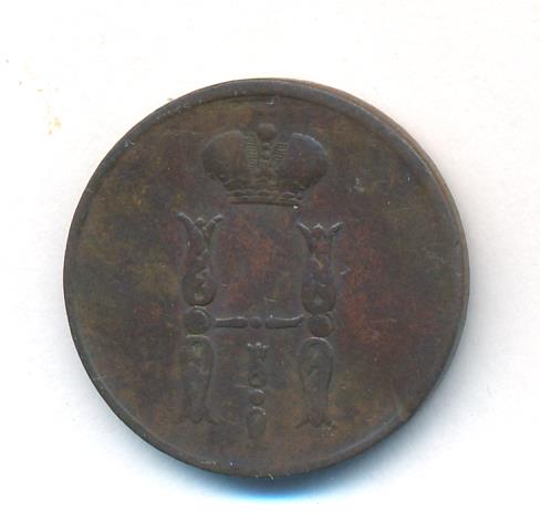 Лицевая сторона — вензель Николая I, оборотная — обозначение номинала (копейка) и дата. Нормативный вес — 5,12 грамма, гурт гладкий.