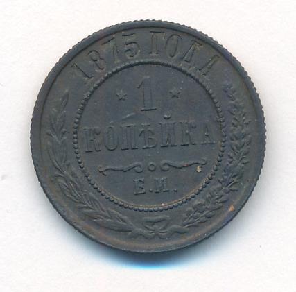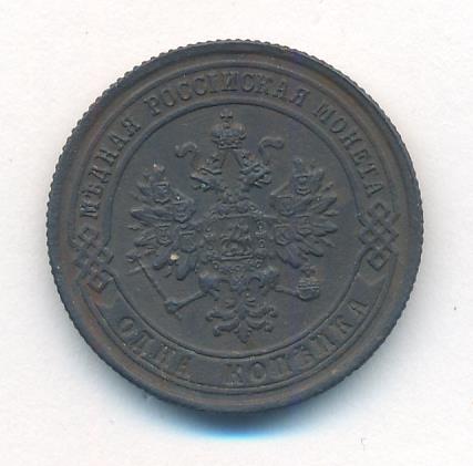 Лицевая сторона — двуглавый орел, надпись МЕДНАЯ РОССIЙСКАЯ МОНЕТА и обозначение номинала (одна копейка); оборотная — обозначение номинала (1 копейка) в бусовом ободке и дата. Нормативный вес — 3,28 грамма, гурт рубчатый.