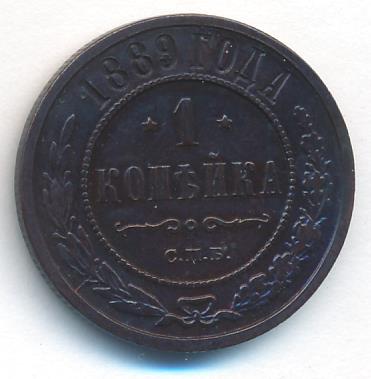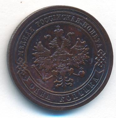 Лицевая сторона — двуглавый орел, надпись МЕДНАЯ РОССIЙСКАЯ МОНЕТА и обозначение номинала (одна копейка); оборотная — обозначение номинала (1 копейка) в бусовом ободке и дата. Нормативный вес — 3,28 грамма, гурт рубчатый.