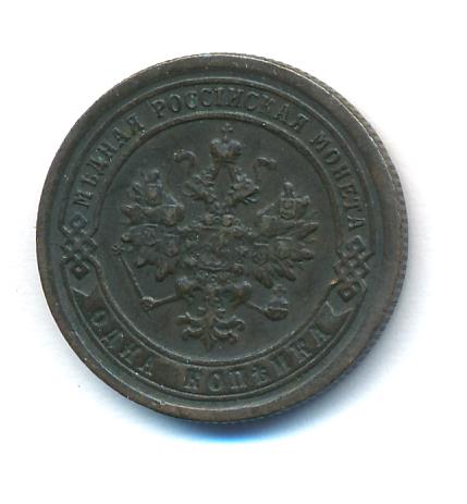 Лицевая сторона — двуглавый орел, надпись МЕДНАЯ РОССIЙСКАЯ МОНЕТА и обозначение номинала (одна копейка); оборотная — обозначение номинала (1 копейка) в бусовом ободке и дата. Нормативный вес — 3,28 грамма, гурт рубчатый.