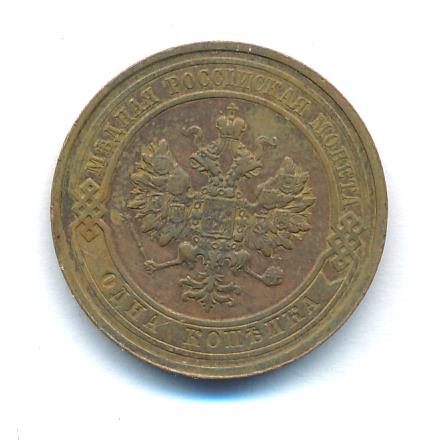 Лицевая сторона — двуглавый орел, надпись МЕДНАЯ РОССIЙСКАЯ МОНЕТА и обозначение номинала (одна копейка); оборотная — обозначение номинала (1 копейка) в бусовом ободке и дата. Нормативный вес — 3,28 грамма, гурт рубчатый.