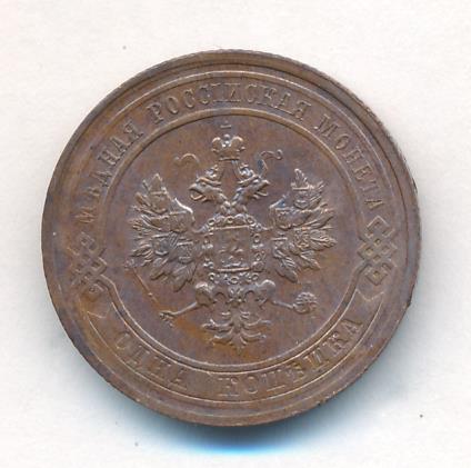 Лицевая сторона — двуглавый орел, надпись МЕДНАЯ РОССIЙСКАЯ МОНЕТА и обозначение номинала (одна копейка); оборотная — обозначение номинала (1 копейка) в бусовом ободке и дата. Нормативный вес — 3,28 грамма, гурт рубчатый.