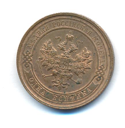Лицевая сторона — двуглавый орел, надпись МЕДНАЯ РОССIЙСКАЯ МОНЕТА и обозначение номинала (одна копейка); оборотная — обозначение номинала (1 копейка) в бусовом ободке и дата. Нормативный вес — 3,28 грамма, гурт рубчатый.