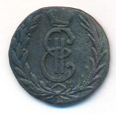 Лицевая сторона - два соболя поддерживают щит с обозначением номинала (денга) под короной, надпись «СИБИРСКАЯ МОНЕТА». Оборотная — вензель Екатерины II в венке из пальмовой и лавровой ветвей. Гурт — шнур, вес — 3,28 грамма.