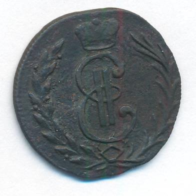 Лицевая сторона - два соболя поддерживают щит с обозначением номинала (денга) под короной, надпись «СИБИРСКАЯ МОНЕТА». Оборотная — вензель Екатерины II в венке из пальмовой и лавровой ветвей. Гурт — шнур, вес — 3,28 грамма.