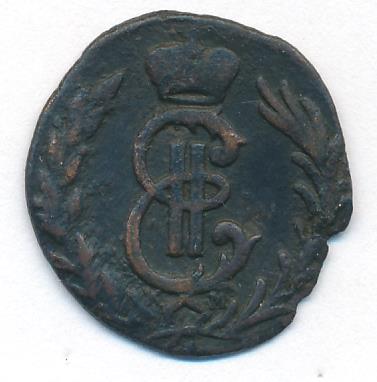 Лицевая сторона - два соболя поддерживают щит с обозначением номинала (денга) под короной, надпись «СИБИРСКАЯ МОНЕТА». Оборотная — вензель Екатерины II в венке из пальмовой и лавровой ветвей. Гурт — шнур, вес — 3,28 грамма.