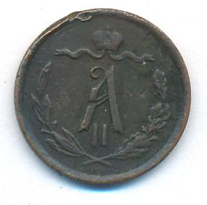 Лицевая сторона — вензель Александра II в венке из лавровой и дубовой ветвей; оборотная — обозначение номинала (1/2 копейки) и дата. Нормативный вес — 1,64 грамма, гурт рубчатый.