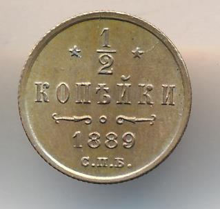 Лицевая сторона — вензель Александра II в венке из лавровой и дубовой ветвей; оборотная — обозначение номинала (1/2 копейки) и дата. Нормативный вес — 1,64 грамма, гурт рубчатый.