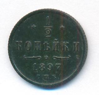 Лицевая сторона — вензель Александра II в венке из лавровой и дубовой ветвей; оборотная — обозначение номинала (1/2 копейки) и дата. Нормативный вес — 1,64 грамма, гурт рубчатый.