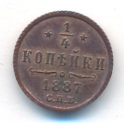 Лицевая сторона — вензель Александра II в венке из лавровой и дубовой ветвей; оборотная — обозначение номинала (1/4 копейки) и дата. Нормативный вес — 0,82 грамма, гурт рубчатый.