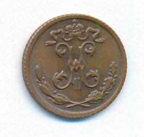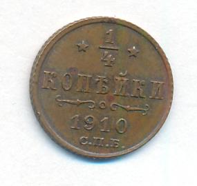Лицевая сторона — вензель Александра II в венке из лавровой и дубовой ветвей; оборотная — обозначение номинала (1/4 копейки) и дата. Нормативный вес — 0,82 грамма, гурт рубчатый.