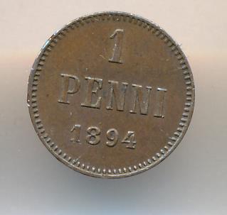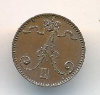 Лицевая сторона — вензель Александра II, оборотная — номинал (1 PENNIA) и дата. Нормативный вес — 1,28 грамма, гурт гладкий.