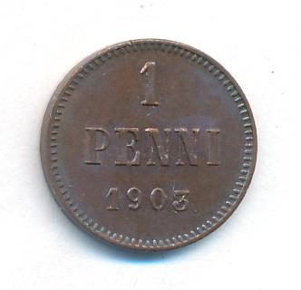 Лицевая сторона — вензель Александра II, оборотная — номинал (1 PENNIA) и дата. Нормативный вес — 1,28 грамма, гурт гладкий.