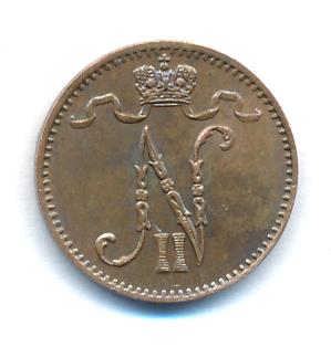Лицевая сторона — вензель Александра II, оборотная — номинал (1 PENNIA) и дата. Нормативный вес — 1,28 грамма, гурт гладкий.